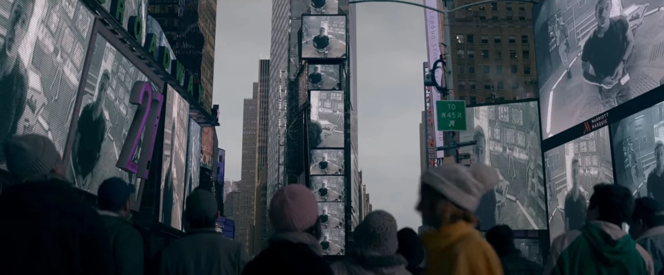 After Captain JJ Collins caused an initial setback in Kessel's plan, people began gathering in Times Square to watch more of the broadcast until Collins ultimately foiled Kessel and destroyed the terrorist missiles, saving New York from annihilation and prompting a cheer from the watching New Yorkers.